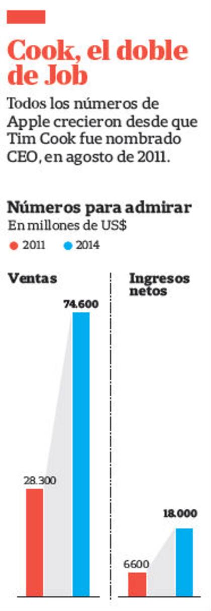 Habla poco. Se muestra en los esperados eventos donde Apple muestra sus novedades. Tim Cook, el CEO de la compañía que fundó y presidió Steve Jobs hasta su muerte, esta vez habló de todo. Desde la pesada sombra de su predecesor hasta este presente, en el que logró que la empresa duplicara su valor desde que asumió, en agosto de 2011.