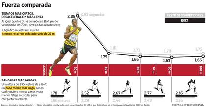 El corredor jamaiquino, el humano más rápido del mundo, tiene una zancada más larga y desacelera a un ritmo más lento que sus rivales
