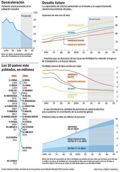 Las economías avanzadas alcanzarán un hito fundamental el próximo año. Según proyecciones de la Organización de Naciones Unidas, su población total en edad productiva disminuirá por primera vez desde 1950; en 2050 se habrá reducido 5%. La cantidad de trabajadores también caerá en algunas de las principales economías emergentes, como China y Rusia. Al mismo tiempo, la proporción de la población de más de 65 años en estos países se disparará.