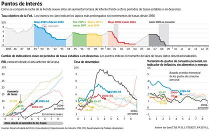 La Fed sugirió en un comunicado que podría realizar un incremento de las tasas de interés de sólo un cuarto de punto porcentual en 2015, en lugar de los dos de un cuarto que había anticipado en su momento. Los inversionistas prevén que la primera alza de las tasas se produzca en septiembre. El organismo espera que su tasa de referencia se mantenga por debajo de 3% hacia diciembre de 2017, un nivel mucho más bajo que el que imperó en el medio siglo previo a la actual expansión de la economía estadounidense.