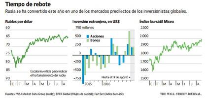 Los inversionistas globales han sumado US$1.300 millones este año a fondos dedicados a invertir en bonos y acciones rusas, según EPFR Global. La participación de extranjeros entre los compradores de bonos del gobierno aumentó a 24,5% al 1 de junio, su mayor nivel desde finales de 2012, según el banco central ruso.