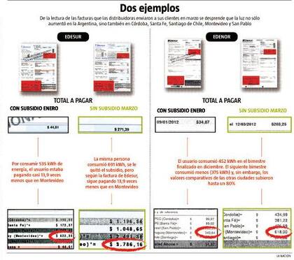 Pero, en rigor, tanto las facturas de Edenor como las de Edesur contienen cuadros comparativos con valores que no se condicen con los precios que presentaban el bimestre anterior, y que parecen alejarse mucho de los precios reales que se cobran en San Pablo, Santiago de Chile o Montevideo, para citar algunos ejemplos. De hecho, según confirmó LA NACION con sus corresponsales en el exterior, en ninguna de estas ciudades la electricidad subió en el período en consideración más del 9%, pese a que según la información provista por Edenor y Edesur se habrían dado subas del 50, 80 o hasta el 300%, según el caso.