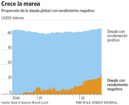Según Bank of America Merrill Lynch, hay US$13 billones de deuda con rendimientos negativos a nivel mundial. La cifra ascendía a US$11 billones antes del brexit y era casi nula a mediados de 2014.