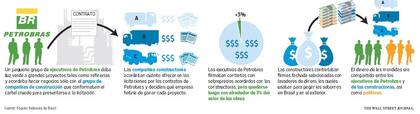 Los fiscales afirman que los sobornos parecen haber comenzado en 1997. Las firmas de construcción que querían hacer negocios con Petrobras acordaban pagar coimas a ejecutivos de la petrolera, que inflaban los costos de los contratos. Las mordidas ascendían a alrededor de 3% de los contratos inflados, según el testimonio de Costa ante el Congreso y de otro ex gerente que llegó a un acuerdo para declararse culpable, Pedro Barusco. Ambos indicaron que los funcionarios de Petrobras que actuaban de facilitadores de los negocios se quedaban con una parte del efectivo de los contratos inflados y destinaban el resto a un fondo para legisladores y partidos políticos.