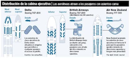 La industria de las aerolíneas, que no siempre destaca por su originalidad, ha sufrido para encontrar la distribución ideal para las cabinas de clase ejecutiva para rutas internacionales, donde los pasajes suelen costar entre US$5.000 y US$10.000. Eso se debe en gran medida a que las expectativas de los viajeros sobre el confort y la conveniencia en la clase ejecutiva han aumentado, y eso significa más metros cuadrados para cada asiento. Los asientos que se convierten en camas horizontales suelen significar el fin de las tradicionales filas en línea recta, por ejemplo, ya que los pies de los pasajeros no se pueden deslizar por debajo del asiento de adelante.