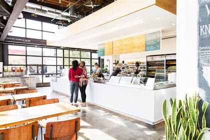 Si nunca visitó un locel de Sweetgreen, imagine un quiosco de productos de granja diseñado por Steve Jobs, con paredes blancas y verduras frescas y coloridas que esperan ser cortadas. Las cocinas abiertas de los establecimientos (un elemento de diseño compartido con Chipotle, otro pionero de las comidas al paso) muestran cuánto de la preparación se hace en el lugar. Los aderezos para las ensaladas se preparan en cada tienda diariamente. Lo mismo sucede con el falafel, que se prepara con arvejas secas dejadas en remojo de la noche a la mañana. (Esto es desconocido en esta categoría; incluso algunos restaurantes caros usan arvejas enlatadas.) La compañía que ya lleva nueve años de existencia también organiza el festival gastronómico y musical Sweetlife en Columbia, Maryland, cada primavera boreal, presentando artistas como Strokes y Solange. Luego de que Kendrick Lamar encabezara el evento en 2015, la cadena colaboró con él ofreciendo una ensalada a la que llamó Beets Don't Kale My Vibe (el título de una de sus canciones que podría traducirse como "El ritmo de las remolachas no le pone coles a mi onda")