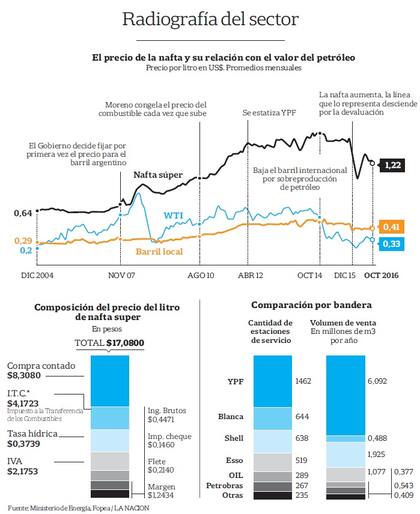 Fueron años en los que los surtidores cambiaron de bandera. La mayoría dejaron de ser propiedad de multinacionales y se nacionalizaron. Este proceso coincidió con una enorme protección a esta industria y mientras las expendedoras de nafta pasaban a manos locales, los argentinos empezaron a pagar los combustibles más caros, lejos de los precios internacionales, que cayeron de la mano de la baja del petróleo.