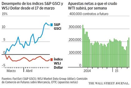 En la semana concluida el 14 de abril, las apuestas de los inversionistas a un alza en los precios del petróleo superaron en 9% (231.556 contratos) las apuestas a un descenso, el mayor nivel desde inicios de agosto, según cifras de la Comisión de Comercio sobre Futuros de Mercancías de EE.UU. Los gestores de fondos, como grupo, pasaron a apostar a un alza de los precios del cobre a comienzos de marzo, después de adoptar la postura opuesta durante 23 semanas consecutivas. Los ingresos de capital a los fondos de energía que cotizan en bolsa crecieron 40% en marzo después de descender en febrero, según Morningstar.