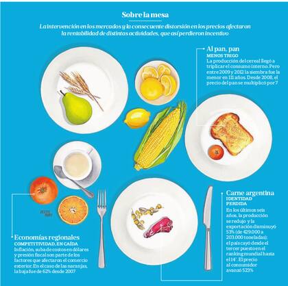 Según la FAO, la producción mundial de alimentos deberá incrementarse en más de 40% para 2030 y 70% para 2050. A contramano, el cristinismo -para citar un dato simbólico- no fue un gran amigo del pan: por ejemplo, en el ciclo 2009/10 la producción de trigo cayó a sólo 2.980.000 hectáreas, la menor superficie en los últimos 111 años. Distorsiones de precios mediante trabas al comercio fueron las medidas cortoplacistas impuestas por el oficialismo. Los resultados: caída de la producción, menos dólares de exportación y alzas en las góndolas.