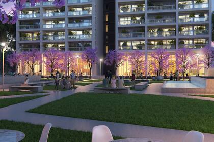 Debido a las características de sus unidades, el conjunto será exclusivamente residencial, pero se completará con locales comerciales a nivel de planta baja con expansión sobre la plaza central y sus respectivas veredas. Las dos torres contarán además con tres subsuelos comunes a ambas, con cocheras, espacios para motos, bicicleteros y un sector de carga eléctrica para electro-movilidad urbana.