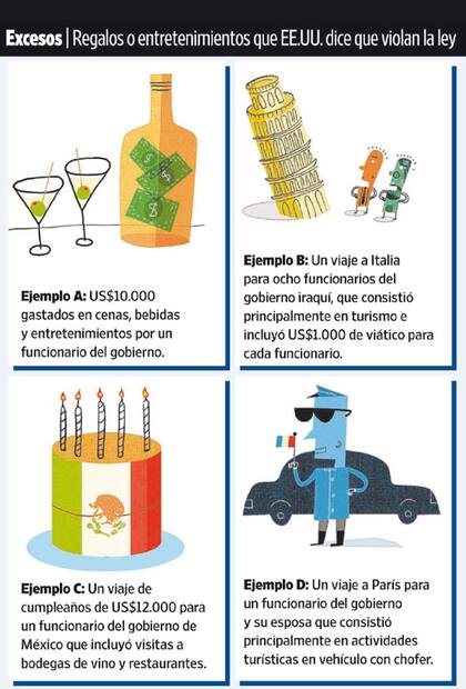 La guía ofrece consejos pragmáticos, en particular en un área de gran preocupación para los departamentos de cumplimiento de normativas de las empresas: regalos, viajes y entretenimiento. "Es difícil imaginar una situación en la que la provisión de tazas de café, tarifas de taxi o artículos promocionales de valor nominal de la compañía evidencie una intención corrupta", afirma el documento. Lo mismo sucede con "un pequeño regalo o muestra de aprecio o gratitud". En cambio, financiar un viaje de cumpleaños de US$12.000 con visitas a bodegas de vino para un funcionario no es aconsejable, señalan las agencias.