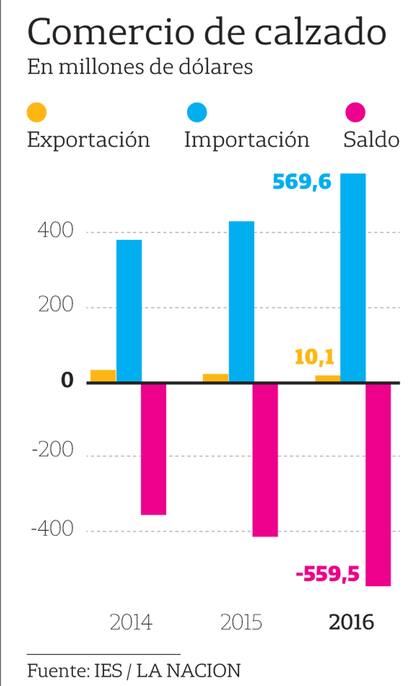 El consumo de calzado en 2016 cayó 3,4% en relación con 2015, con un total de 142 millones de pares contra los 147 millones de pares de 2015. El consumo per cápita bajó un 4,4%, al alcanzar los 3,3 pares contra los 3,7 pares de 2015. Este número todavía se mantiene por encima del promedio de la última década, de 3,2 pares per cápita. El año pasado, los valores importados treparon a los US$ 570 millones, un 29,8% por encima de los US$ 439 millones de 2015. Con respecto de las cantidades, el año finalizó con compras al exterior por 27,5 millones de pares, un 22,1% superior a 2015, según la consultora IES.