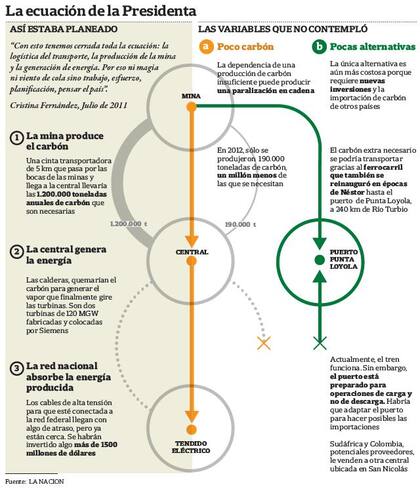 En julio de 2011, la presidenta Cristina Kirchner llegó a Río Turbio a hacer una inauguración de la central aún no terminada. Eran tiempos de campaña presidencial y cualquier válvula que se coloca sirve para cortar cintas. "Lo que también se inauguró en épocas de Néstor es el nuevo ferrocarril hasta Punta Loyola, con una inversión muy importante, y con esto tenemos cerrada toda la ecuación: la logística del transporte, la producción de la mina y la generación de energía. Por eso ni magia ni viento de cola, sino trabajo, esfuerzo, planificación, pensar el país". No terminó la frase, la interrumpieron con aplausos.