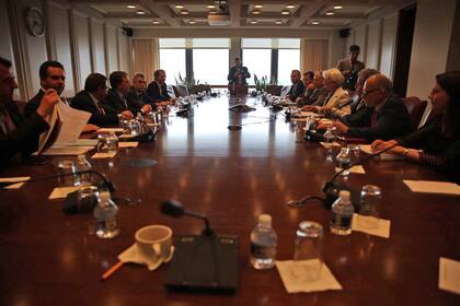 En tanto, Lagarde estuvo junto a su número dos, el primer subdirector gerente, David Lipton, Nigel Chalk, economista a cargo del caso argentino, Alejandro Werner, director del Hemisferio Occidental y Roberto Cardarelli, jefe de la misión del FMI para la Argentina.