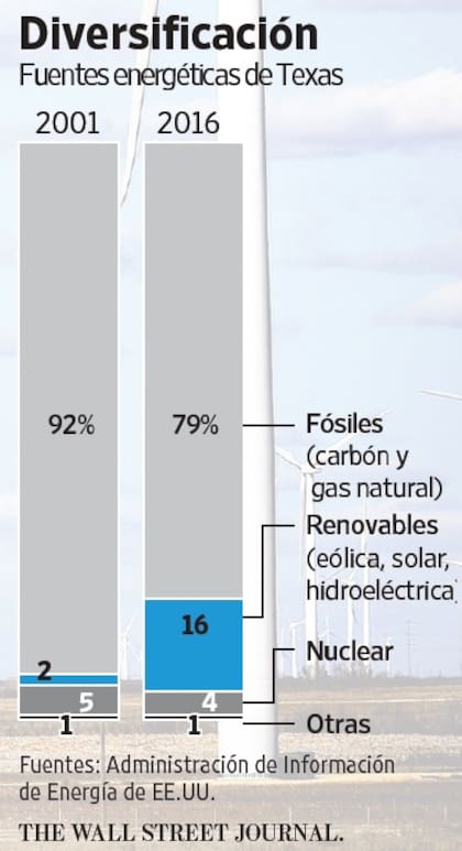 Texas ha sumado más capacidad de generación eólica que cualquier otro estado del país y las turbinas de viento representaron en abril cerca del 16% de su capacidad de generación eléctrica. El estado anticipa además un enorme aumento de la energía solar.