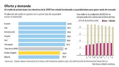 Además, la producción que fue interrumpida por motivos políticos u otros factores está regresando al mercado. La producción iraní de agosto quedó casi 800.000 barriles al día por encima de su promedio en 2015, cuando estaba restringida por las sanciones internacionales, según la AIE. Tal cifra prácticamente contrarresta el descenso de la producción es-tadounidense en igual período. La producción canadiense ha repuntado después de los incendios forestales que la afectaron en mayo. Igualmente, Nigeria y Libia podrían incrementar su producción en la medida en que amainen los conflictos políticos.