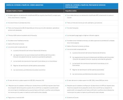 Para empezar hay una diferencia en los precios y también en la velocidad del envío. El correo oficial puede demorar hasta dos meses en llegar y el correo privado esos tiempos se reducen de manera considerable. Si el envío se hace a través del correo oficial de un país como China (China Post) llegará a través del correo oficial argentino. Si en cambio se compra a través de sitios de e-commerce que operan con DHL o FED express, el envío, salvo que la plataforma brinde la posibilidad de elegir, llegará por courier.Los impuestos y el proceso para informar a la AFIP varían de acuerdo a cada uno de los mecanismos.
