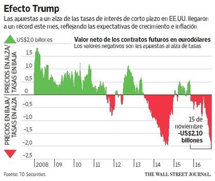 Es la señal más reciente del impacto que la elección de Donald Trump en los mercados del mundo. Durante las últimas dos semanas, los inversionistas han tratado de posicionarse para una presidencia de Trump, que creen significará mayor crecimiento, una inflación más alta y una Reserva Federal que estará bajo presión para elevar las tasas de interés de una manera que no se ha visto durante más de una década.
