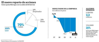 Según la información oficial que brindó YPF, la empresa hizo uso de la opción para adquirir 54,67% de las acciones de GASA que están en manos de British Gas (continuará su pelea en la Justicia). De esa manera, la petrolera local, que ya tenía un 45,33% de GASA, quedará como "accionista principal y controlante, de manera indirecta", con un 70% de participación en la distribuidora. "La decisión de YPF tiene como objetivo hacer de Metrogas una empresa más eficiente y rentable", explicó la petrolera a través de un comunicado.