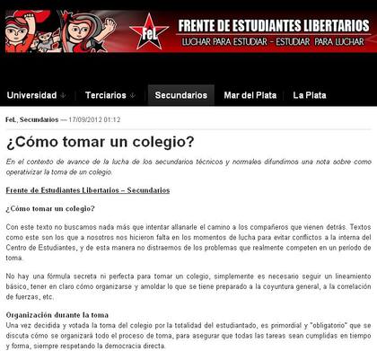 Las tomas en algunos colegios de la Ciudad de Buenos Aires continúan y elevan la protesta de los estudiantes. Para apoyar la medida y profundizarla el Frente de Estudiantes Libertario publicó un manual virtual que sirva como guía.