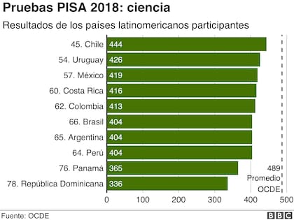 Pero todos los países latinoamericanos evaluados obtuvieron una clasificación inferior a la del promedio de países de la OCDE, el denominado "club de los países más ricos del mundo" al que pertenecen Chile y México.
