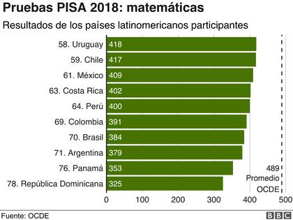 Uruguay fue por su parte el mejor país latinoamericano en matemáticas, ocupando el puesto 58 entre todos los 79 países evaluados.