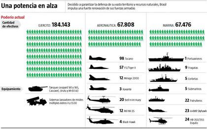 RIO DE JANEIRO.- Impulsado por su nuevo peso económico y por su deseo de darle mayor proyección a su influencia internacional , Brasil está en pleno proceso de renovación de sus fuerzas armadas, para garantizar la defensa de su territorio y la protección de sus recursos naturales.