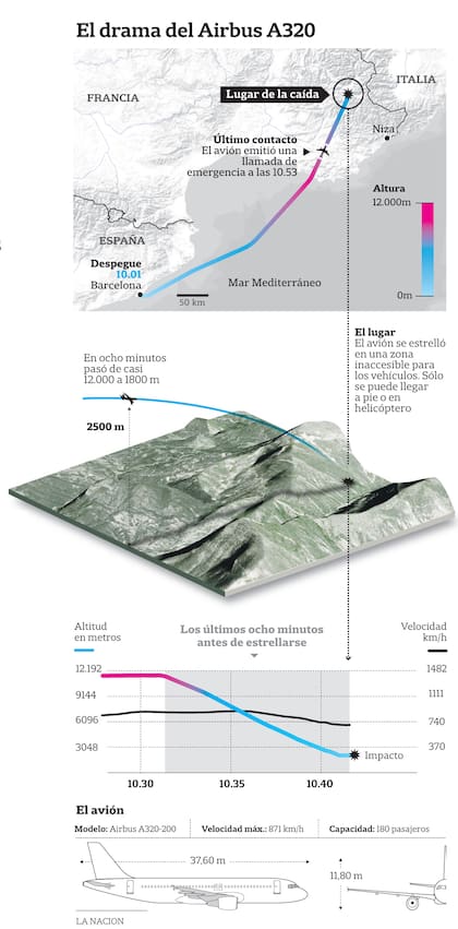 PARÍS.– El accidente de un Airbus 320 de Germanwings en los Alpes franceses dejó ayer a Europa en un fuerte estado de conmoción tanto por la muerte de los 150 ocupantes de la nave, entre ellos, una joven pareja argentina de Pacheco, como por las numerosas especulaciones sobre las causas de una inusual caída en picada que duró ocho minutos.