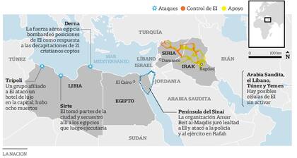 También en Egipto y Libia organizaciones extremistas activas juraron lealtad a la organización y recibieron su reconocimiento público como "provincias" del supuesto califato. Y ya es evidente que sus operativos están desestabilizando a los países a su alrededor, como demostró la masacre de los cristianos coptos egipcios en territorio libio.