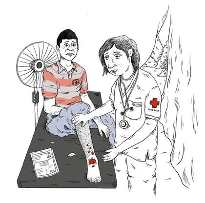 - 12.00 Llegamos a Cali y una señora llamada Onaira nos prestó el baño. Hace seis días que no nos bañamos. También nos dio arroz con carne, café y nos prestó la lavadora para lavar la ropa. Nos dejó quedarnos en su casa hasta el otro día. Hace casi un año que no veo a mi hija. Tengo miedo de perderla, que cuando crezca y pregunte por mí piense que la abandoné. Aunque no la voy a perder, jamás. He tratado mucho de conseguir el pasaje para que se venga con su mamá. Pero las veces que logro alcanzar a completar el dinero tengo que pagar arriendo, agua, luz, gas, la comida.