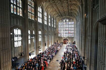 6. Invitados. Empiezan a llegar invitados, que se desplazan hasta la capilla St George por un camino bordeado por nutridos grupos de público, instalados en ese lugar de privilegio desde temprano.