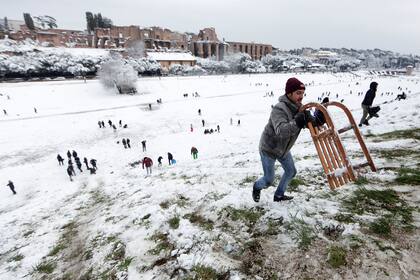 Las molestias no impidieron que turistas y romanos a media mañana, cuando paró de nevar y salió el sol, salieran, con botas, esquíes, trineos a disfrutar de postales extraordinarias, con cámara en mano.