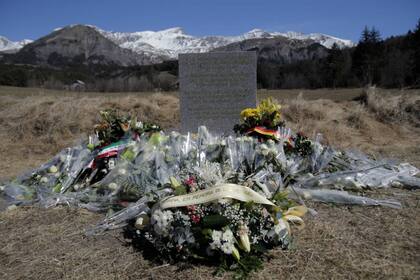 A las afueras del pueblo, justo frente al sendero que conduce hasta la montaña del accidente, una pequeña estela con un texto en francés, español y alemán se ha convertido en el lugar de peregrinación de las familias de los fallecidos.
