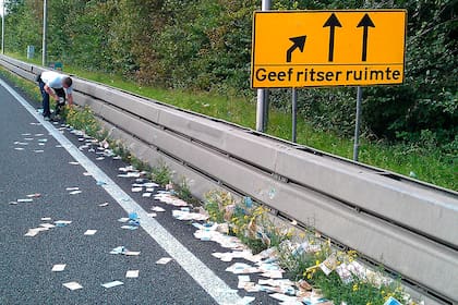 El incidente desató una peligrosa persecución por los euros en la transitada carretera A2 cerca de Maastricht, ya que la gente detuvo su automóvil en las banquinas y corrió para capturar los billetes sueltos.
