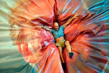 "Jump Trump" es el título de una exposición fotográfica en el país ibérico que permite a los visitantes saltar y aterrizar sobre una colchoneta cubierta con una inmensa foto del rostro del presidente.