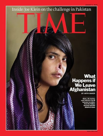 El retrato que despertó la atención de todo el mundo, tomado hace dos años, muestra a Aisha sin nariz. También le fueron mutiladas las orejas: los talibanes se las cortaron por decreto después de que la joven, cansada de los vejámenes, intentó escapar de la casa.