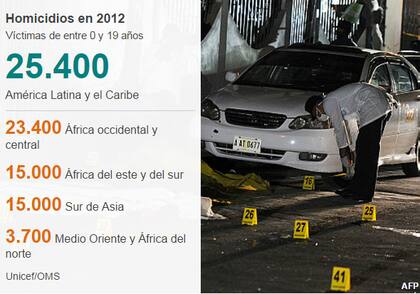 En 2012, indica Unicef, más de 25.000 víctimas de homicidios en América Latina y el Caribe tenían menos de 20 años, "lo cual representó alrededor del 25% de todas las víctimas de homicidios en el mundo".