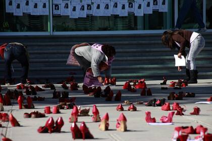 El acto consistió en poner zapatos de color rojo similares a los que llevaban las mujeres cuando desaparecieron.