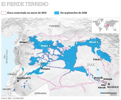 Tan sólo en 2016, el "califato" se encogió cerca de un 20% y perdió a algunos de sus más influyentes líderes, como su máximo responsable de comunicación, Abu Mohamed al-Adnani, a causa de los bombardeos norteamericanos. El cierre de la frontera con Turquía frenó la llegada de nuevos voluntarios, mientras que la coalición internacional estranguló sus fuentes de financiación y el Ejército iraquí se ha reforzado.