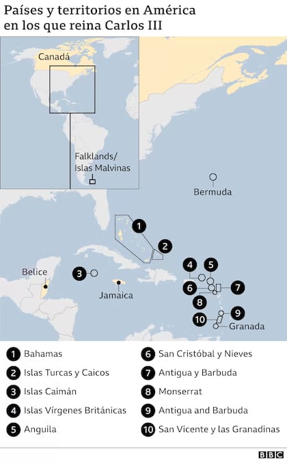 Isabel II era mundialmente conocida como la reina de Inglaterra, pero lo cierto es que su corona -que ahora ha heredado su hijo, el rey Carlos III- abarcaba muchos otros territorios.