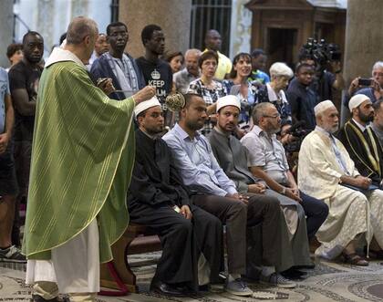 ROMA (AP).- Musulmanes en Francia e Italia acudieron en masa a misa ayer en un gesto de solidaridad interreligiosa después de una serie de ataques de extremistas islámicos en Europa que amenazan con profundizar las divisiones entre las religiones. La medida fue propuesta por los musulmanes franceses luego del asesinato del sacerdote Jacques Hamel mientras celebraba misa en Ruan, la semana pasada. Varios templos católicos de ciudades como Roma, Nápoles, Milán, Turín, Palermo y Bari recibieron a los musulmanes. En Roma, el acto tuvo lugar en la basílica de Santa María del Trastevere, adonde acudieron tres imanes de mezquitas que apostaron por el diálogo entre religiones y para reiterar que el "islam es paz". Lo mismo sucedió en la catedral de Ruan y en otras iglesias católicas de Francia.