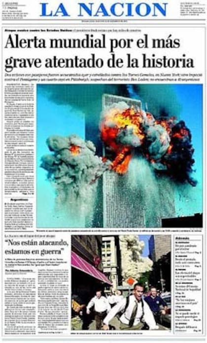 Portada de LA NACION tras los ataques terroristas