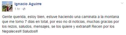 Finalmente, esta mañana Luis Ignacio se comunicó con sus familiares y también publicó un mensaje en su cuenta de Facebook para llevar tranquilidad. Una familia entera respiró aliviada.