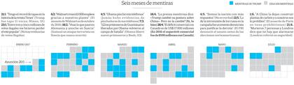 El diario The Washington Post verificó cada una de las declaraciones de Trump desde que asumió: durante los primeros 151 días de su presidencia, contó 669 afirmaciones falsas o engañosas, es decir, un promedio de más de cuatro por día.