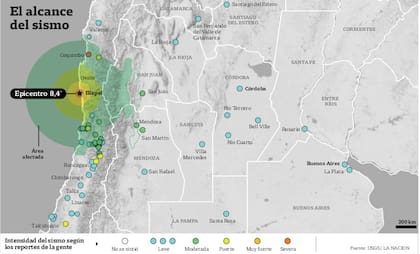 Apenas sucedido el terremoto, la Cuarta Región quedó sin comunicación y energía, y el movimiento fue tan potente que lo sintieron en ciudades de Brasil, en Buenos Aires, Córdoba y otras provincias fronterizas como Mendoza (ver aparte), donde se reportó a través de la radio local la caída de al menos tres viviendas. Según reportó Sismología Chile, el temblor fue de 8,4 grados en la escala de Richter. El Servicio Geográfico estadounidense, que mide en una escala similar, cifró la magnitud en 8,3°. Hasta anoche se habían registrado 14 réplicas.