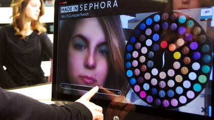 Tras múltiples programas disponibles en Internet para jugar a cambiarse el pelo y maquillarse uno o a alguna celebridad (como la aplicación publicitaria de Bobbi Brown, con Katie Holmes como conejillo de Indias), la idea se traslada, poco a poco, al terreno comercial: en su tienda de Milán Sephora cuenta con una computadora-espejo de realidad aumentada para probarse virtualmente los cosméticos en venta, en tiempo real y en 3D. Así, los probadores de productos con algodones demaquillantes ya son oficialmente una antigüedad.