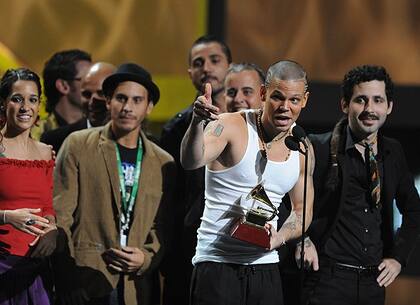 "Esto se lo dedico a Mercedes Sosa, que en paz descanse", expresó René Pérez, "Residente" de Calle 13, tras aceptar el galardón al ldisco del año y llamar a la "gente" de Sosa al escenario.