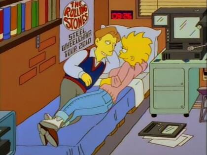 Una carrera inagotable. En 1995, Matt Groening planeó la primera proyección a futuro de Los Simpsons, al narrar el enamoramiento de Lisa mientras estudiaba en la universidad. Con la acción ambientada en el 2010 (quince años más tarde de cuando el capítulo fue emitido), en la habitación de Lisa hay un poster de los Rolling Stones anunciando la gira "Steel Wheelchair Tour" (un juego de palabra entre Steel Wheels y el término en inglés para ‘silla de ruedas’). Al momento en el que el capítulo salió al aire, Jagger y compañía tenían cincuenta y pocos y ya eran vistos como viejos. Mal que le pese a Groening (o a sus guionistas), dos décadas más tarde aun siguen tocando.