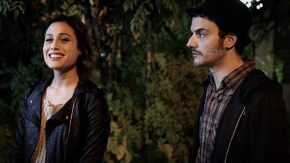 Mercedes Oviedo entre Sebastián D'Angelo y Gustavo Pardi, en este film que el propio D'Angelo codirige con Santiago Fernández Calvete