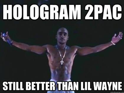 Durante este fin de semana, en el festival Coachella, la presentación de Dr. Dre y Snoop Dogg incluyó una presencia algo perturbadora: el holograma del fallecido Tupac Shakur rapeó como si su asesinato nunca hubiera sucedido. Primero fue "Hail Mary" y luego "2 of Amerikaz Most Wanted", junto a Snoop; al show luego se sumarían otros invitados como Eminem, 50 Cent y Wiz Khalifa. Más allá del escalofrío generalizado (impresionó la calidad de su imagen, de su materialización), la repercusión del hecho en la red fue inmediata. Varios músicos y celebridades twittiaron su opinión sobre esta inesperada resurrección: Katy Perry confesó haber llorado, por ejemplo. Y, sátira mediante, ya aparecieron varios memes del rapero muerto en 1996 (la referencia a Star Wars era inevitable). Incluso, ya tiene su propia cuenta de Twitter con casi 20 mil followers, sí.